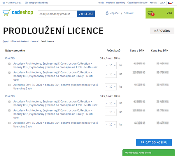 Všichni stávající zákazníci CAD Studia obdrží v nejbližší době předpřipravený login do účtu s personalizovaným přehledem aktuálních licencí své firmy. CAD eShop je k dispozici v češtině a v angličtině, s cenami v Kč a v Eurech.