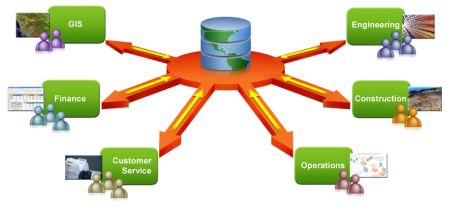 Topobase integruje data z aplikací pro počítačově podporované navrhování (CAD), z databází majetku, z geografických informačních systémů (GIS) a z papírových i elektronických zdrojů informací o zákaznících do centralizované databáze prostorových informací o infrastruktuře. To přináší vyšší efektivitu provozu včetně menšího objemu nedokončených projektů, rychlejší odezvy služeb zákazníkům, urychleného řešení výpadků a podobně. Též: AutoCAD Map 3D Enterprise - Autodesk Infrastructure Map Server Enterprise